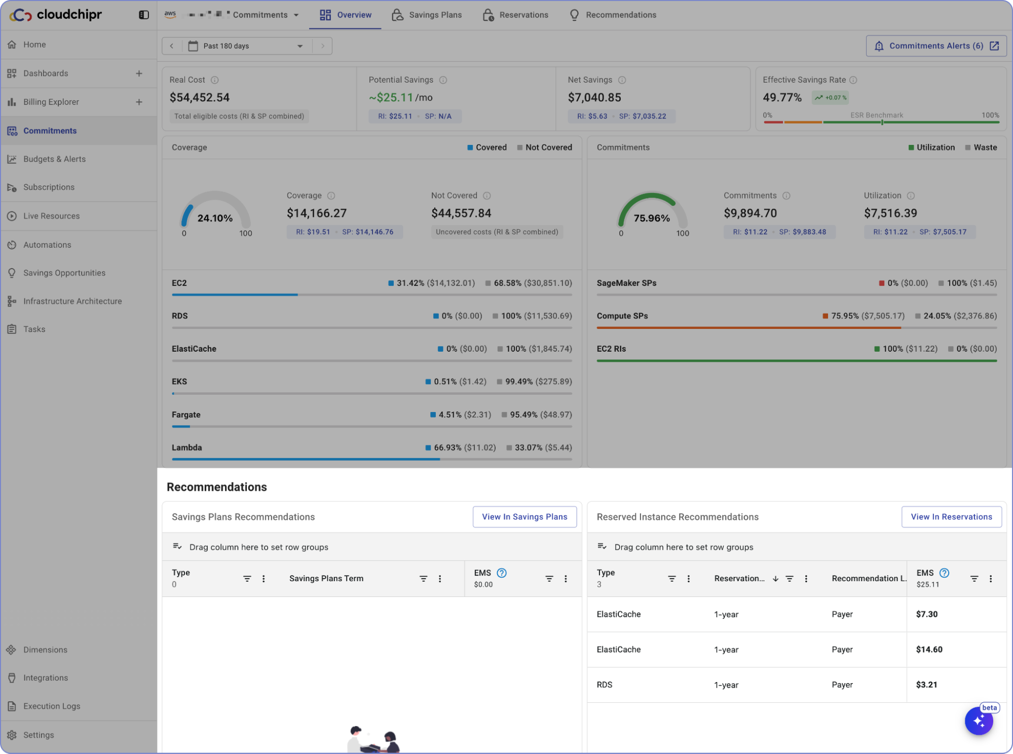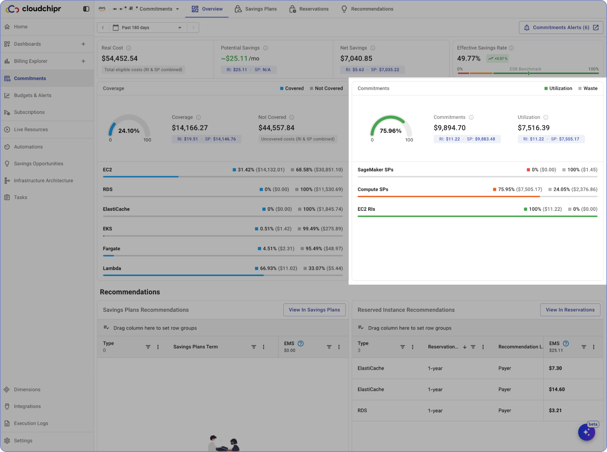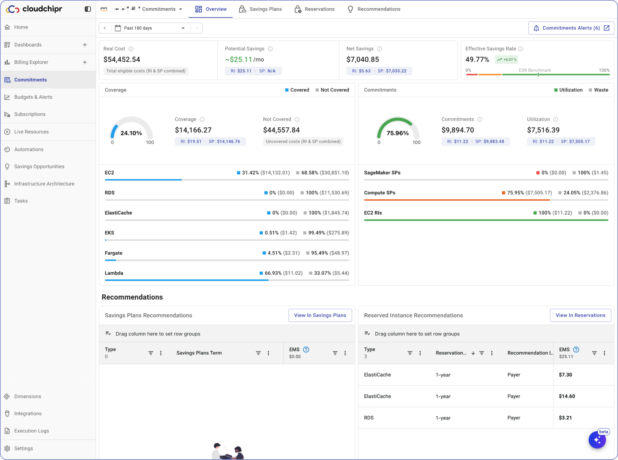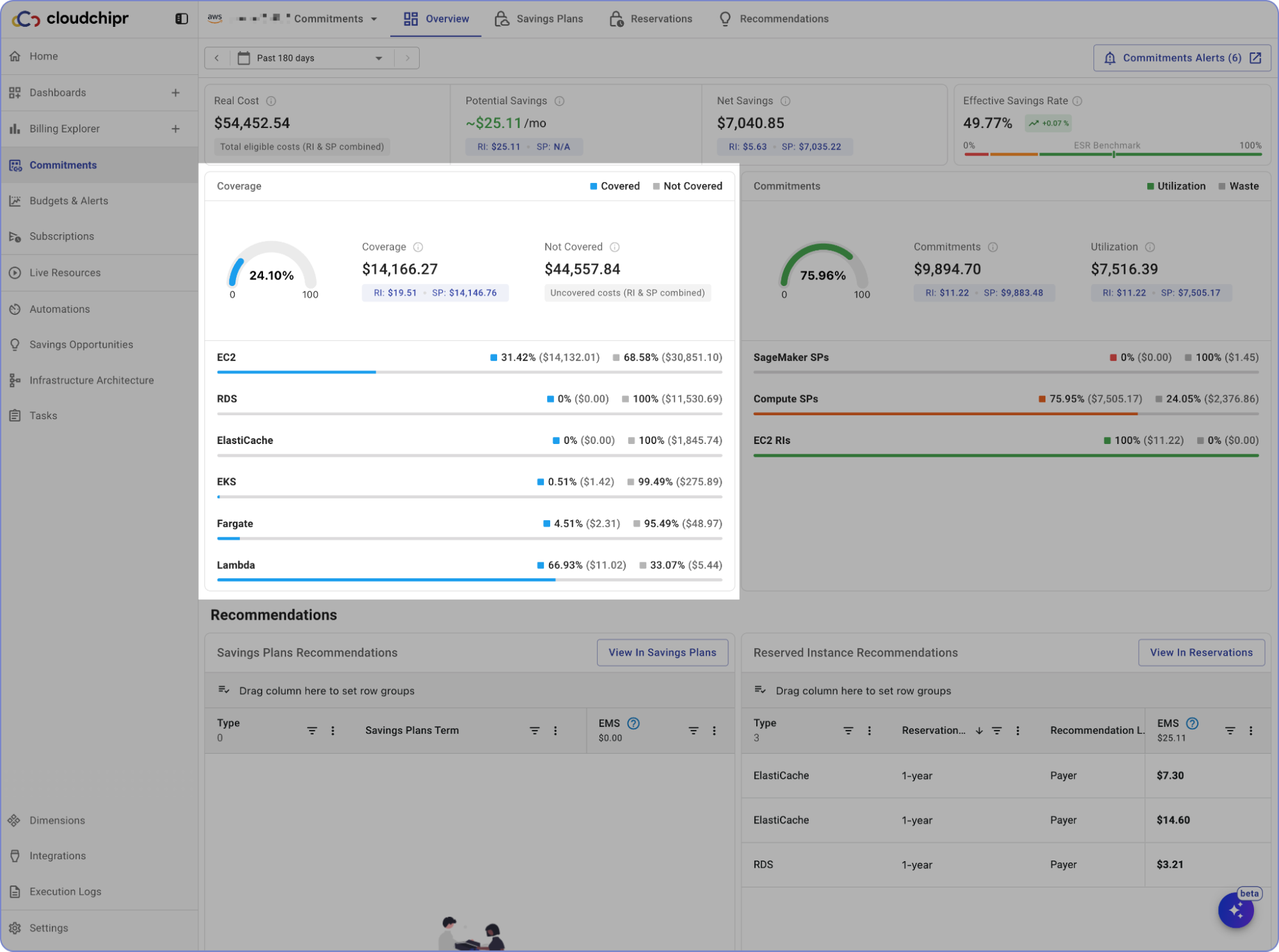 - Potential Savings – The total estimated savings based on commitment recommendations (Reserved Instances and Savings Plans).