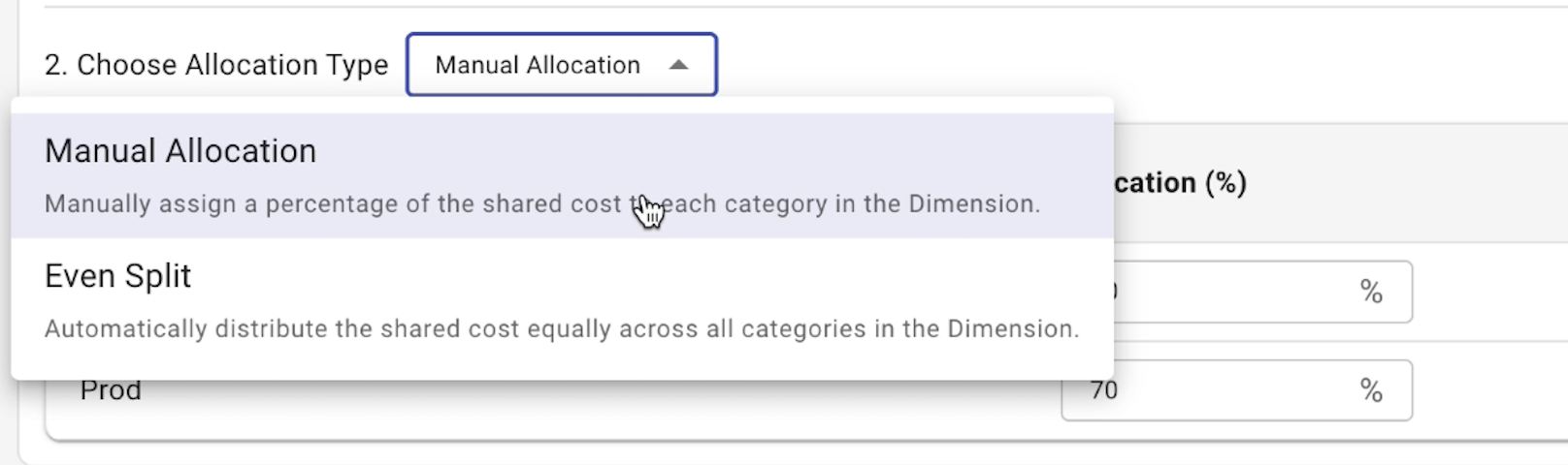 Not all costs map directly to a single project, team, or environment. Shared expenses, such as networking, storage, database, or support services often need to be distributed across multiple groups. Cloudchipr provides shared cost allocation to handle these cases.