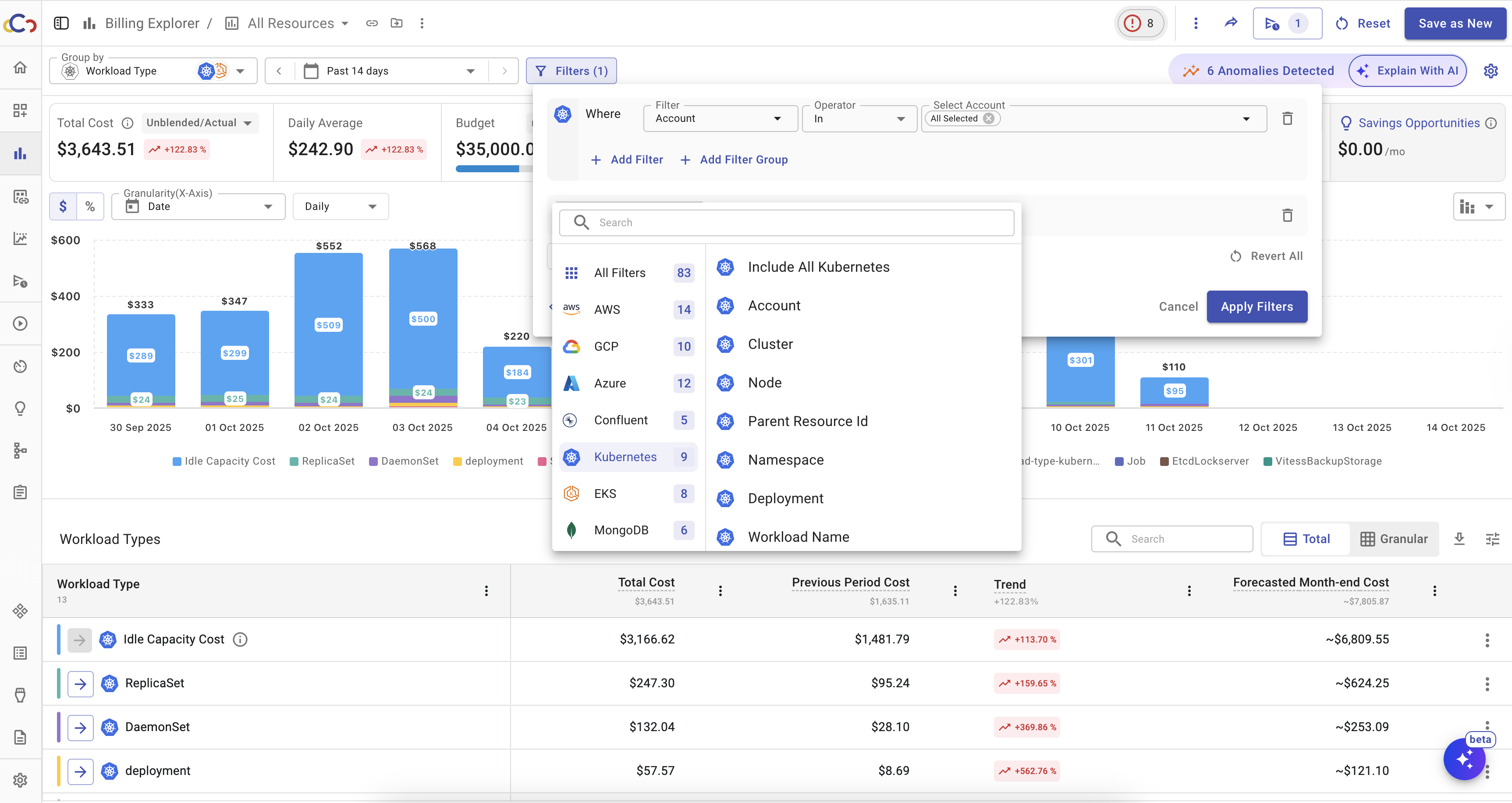 - In Billing Explorer, all Kubernetes-related resource types are supported, allowing you to drill down into costs at any level of detail.