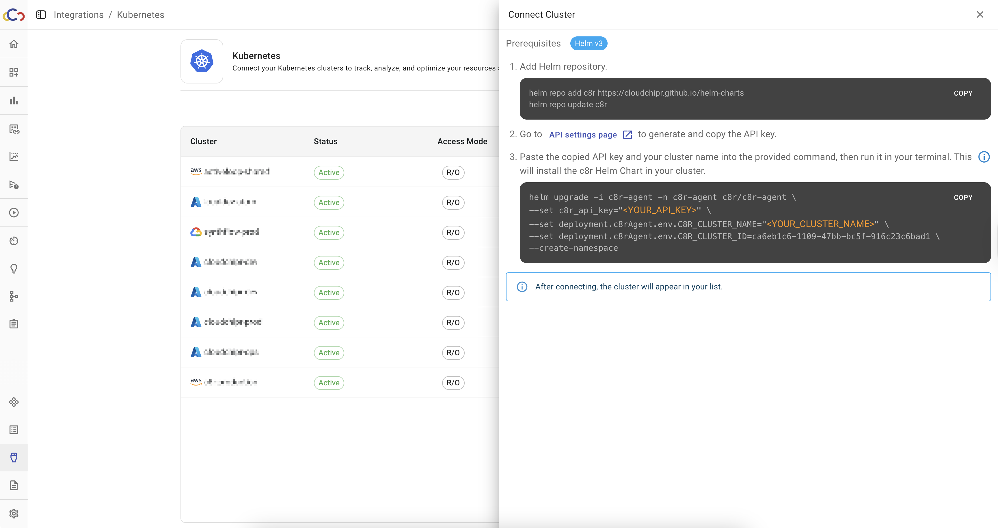 You can connect Kubernetes clusters to Cloudchipr using the following steps: