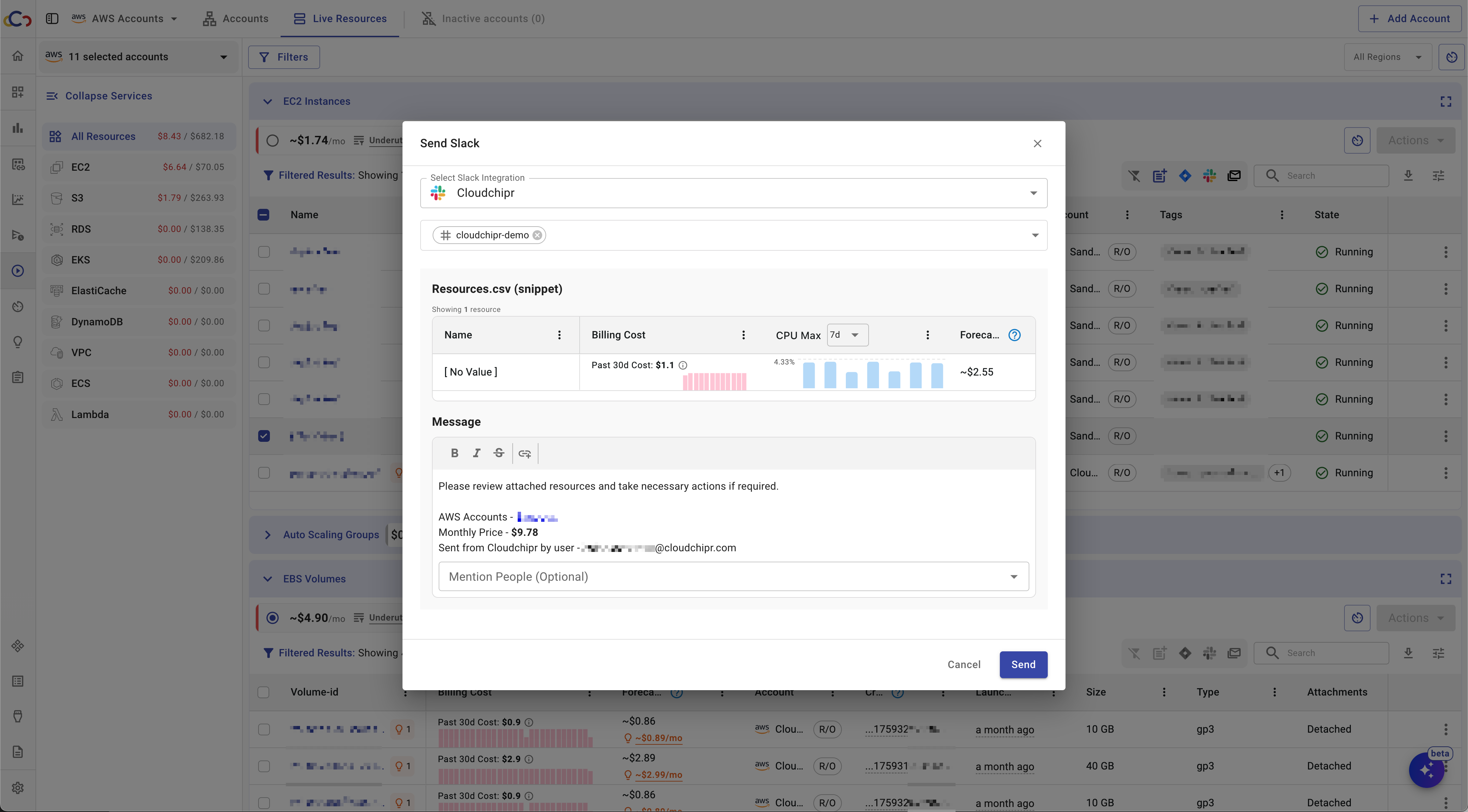 Send notifications to Slack channels or email groups to improve accountability and cloud hygiene.