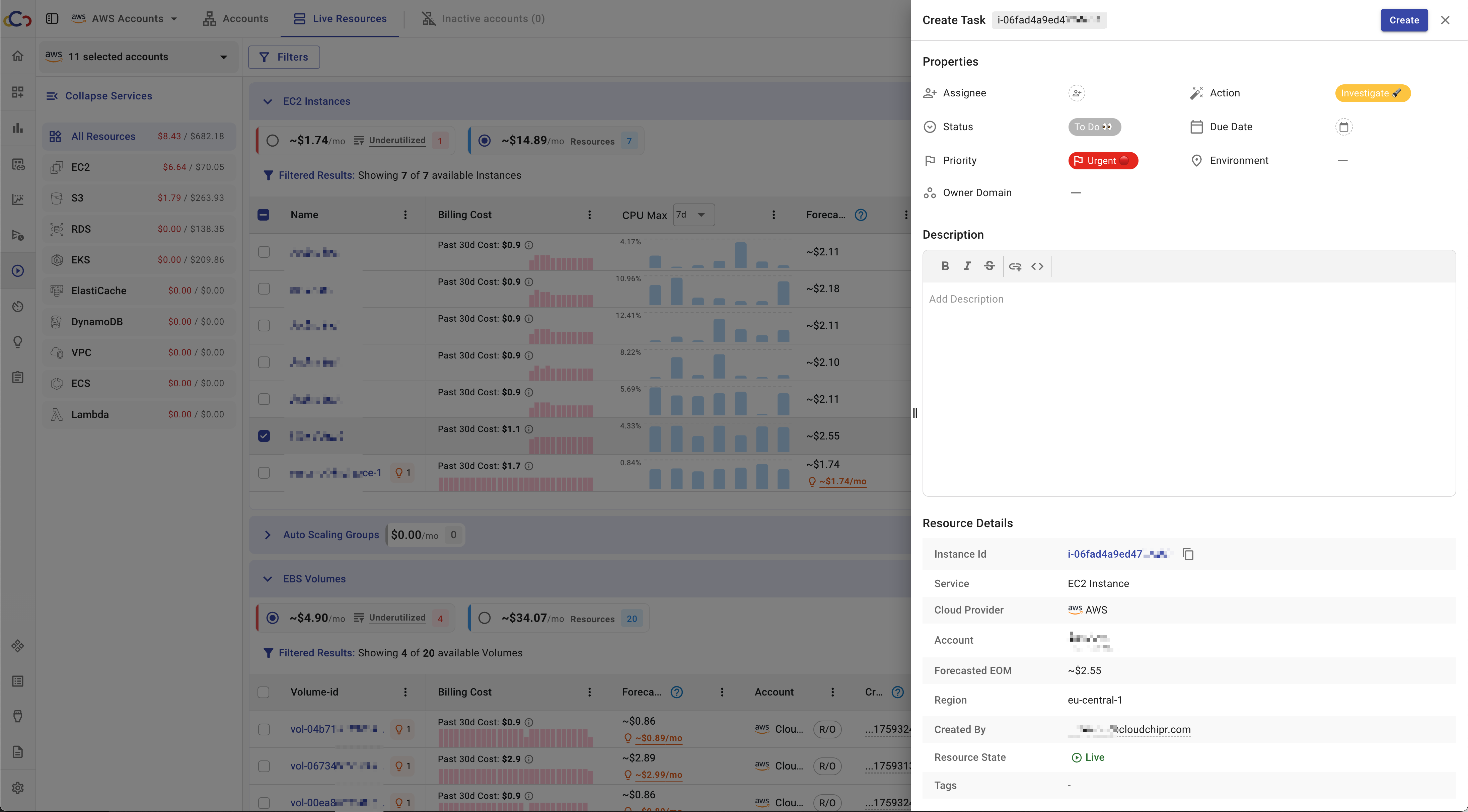 The Live Resources page provides a single view of all cloud resources across your accounts and regions. It is designed for DevOps and FinOps engineers who need to track live resource usage, identify underutilized spend, and take corrective actions.