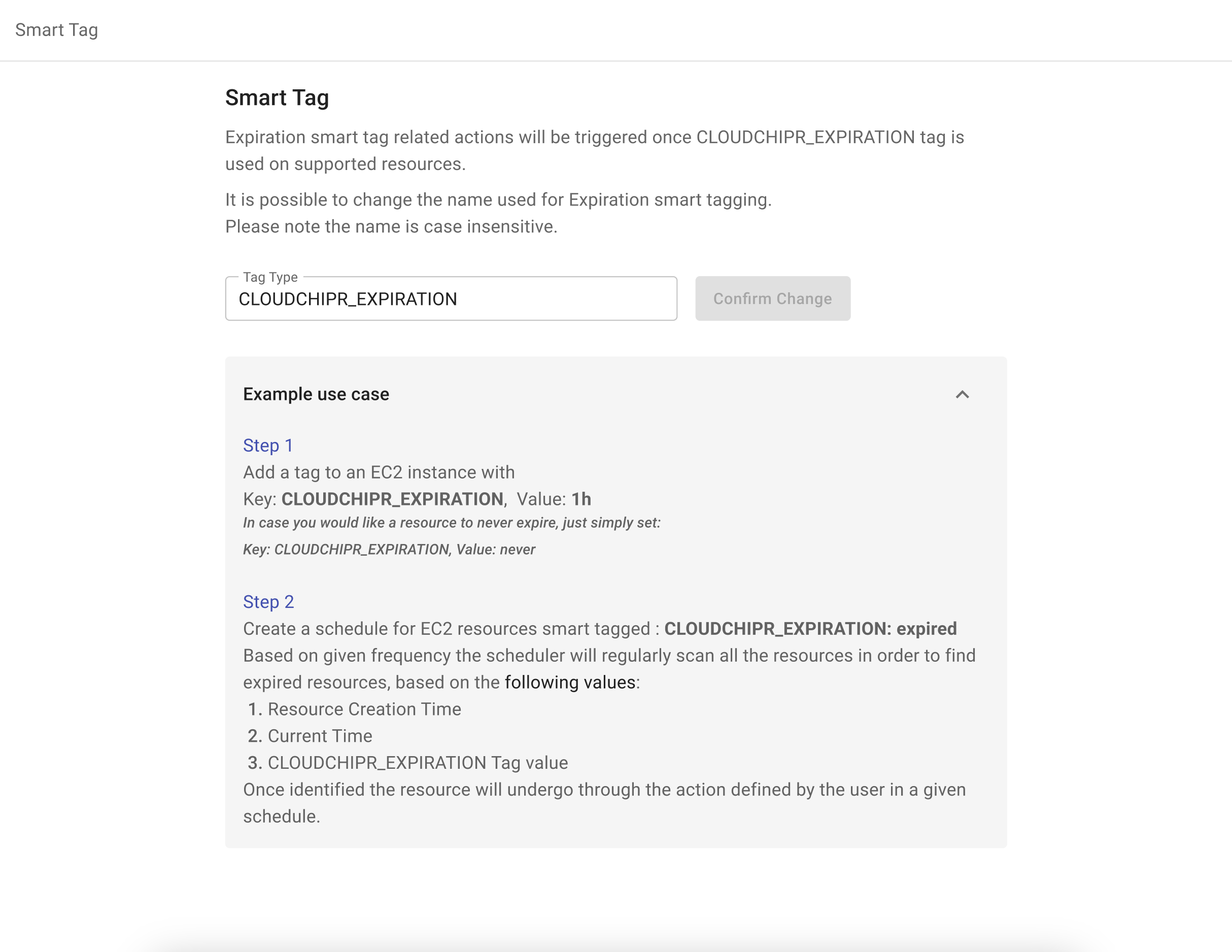 Smart TAGs are specific TAGs that Cloudchipr will treat differently. Currently, Cloudchipr supports only expiration
